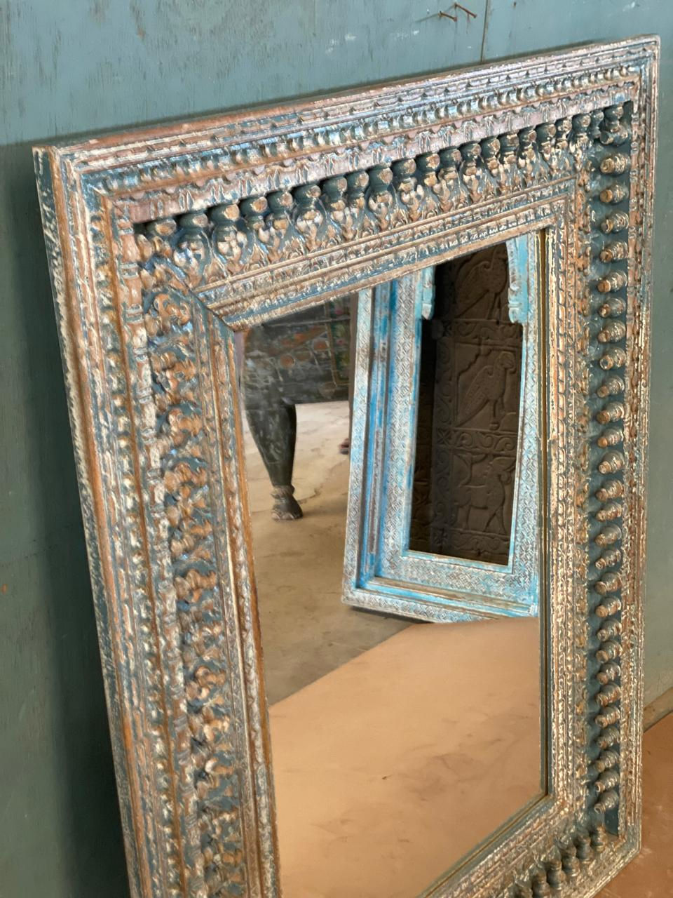 NEW GREY BLUE CARVING MIRROR FRAME